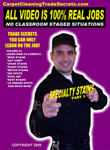 Here and only here, you learn carpet cleaning trade secrets that would take you years to master on your own by watching 100% real job footage!